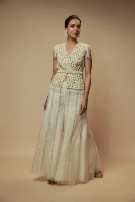 IVORY BEAD EMBROIDERED MINT GREEN TUNIC & PALAZZO SET