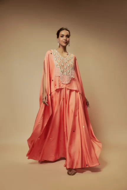 NEON/ PINK OMBRÉ CHIFFON CREPE TUNIC & PALAZZO SET