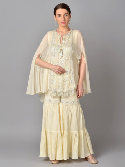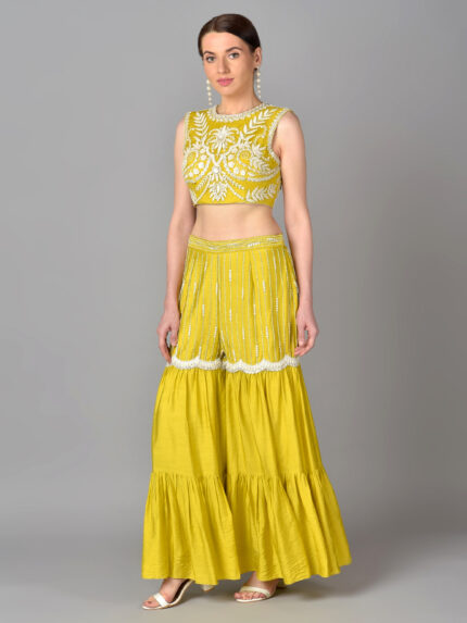 YELLOW EMBROIDERED HIGH LOW TUNIC & GHARARA SET