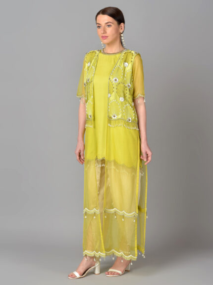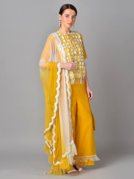 PEARL EMBROIDERED YELLOW ORGANZA SILK TUNIC & PALAZZO SET