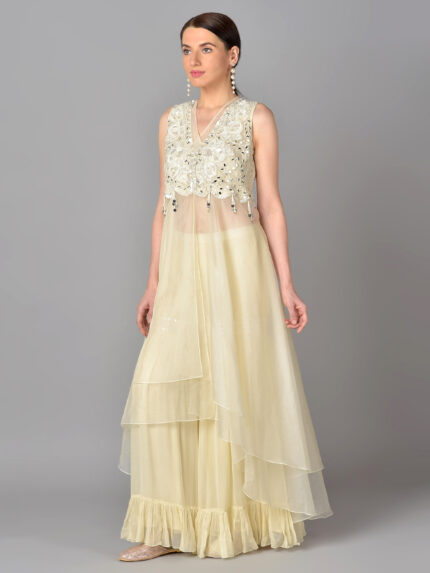 PEARL EMBROIDERED ORGANZA SILK DOUBLE LAYER TUNIC & PALAZZO SET