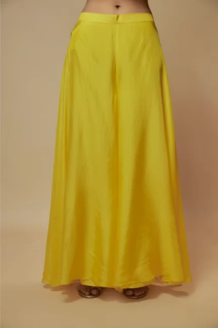 BLUE SEQUINS AND WHITE CUT DANA EMBROIDERED YOKE SILK ORGANZA TUNIC PAIRED WITH A FLARE SILK ORGANZA PALAZZO