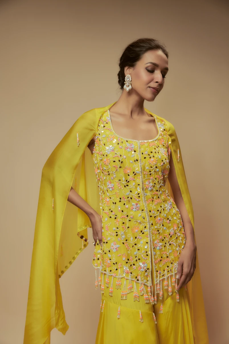 GOLD EMBELLISHED YOKE PANEL TUNIC & PALAZZO SET