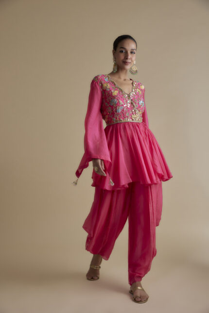 MULTI COLOR EMBELLISHED OVERLAP TUNIC & PALAZZO SET