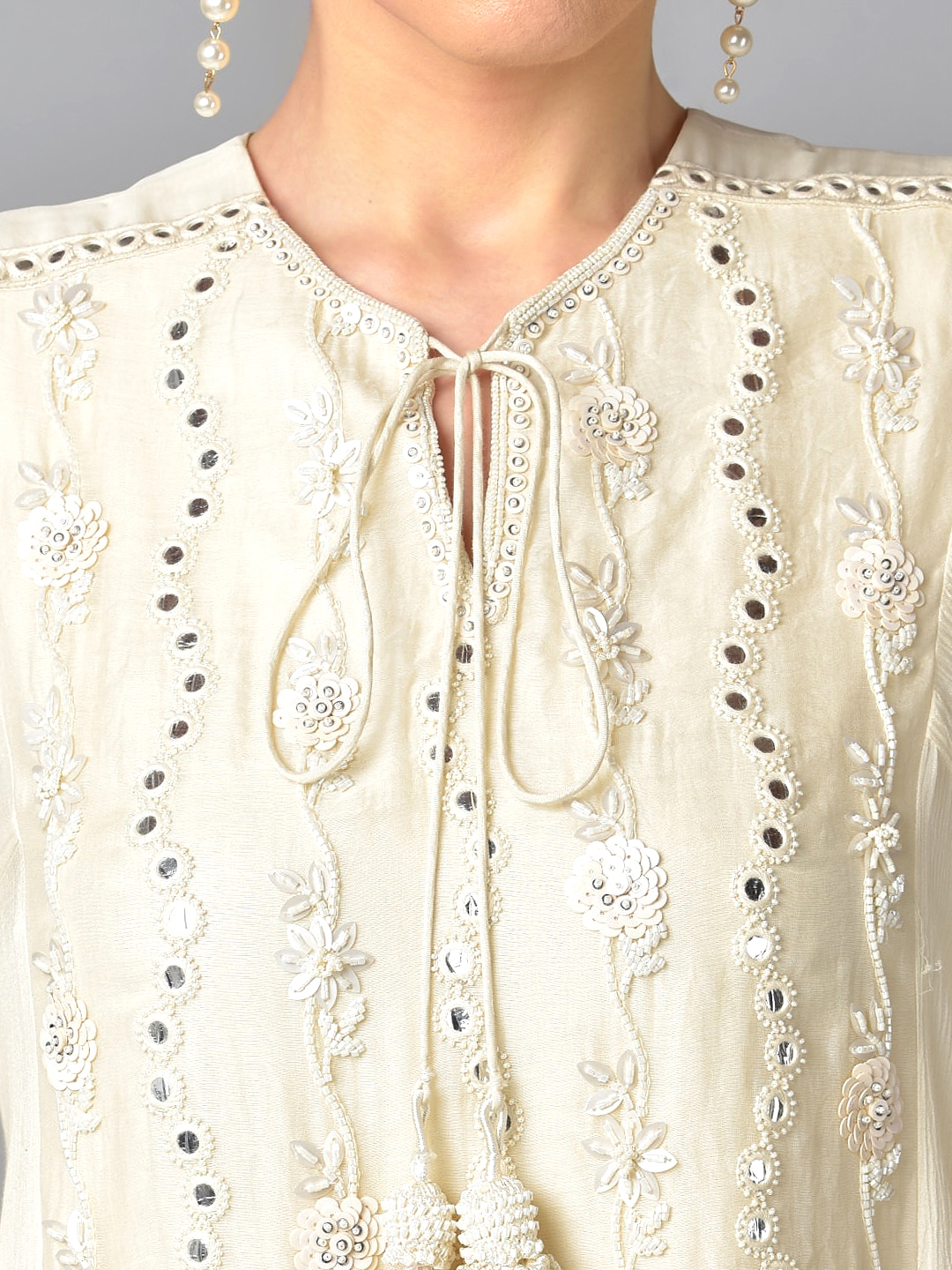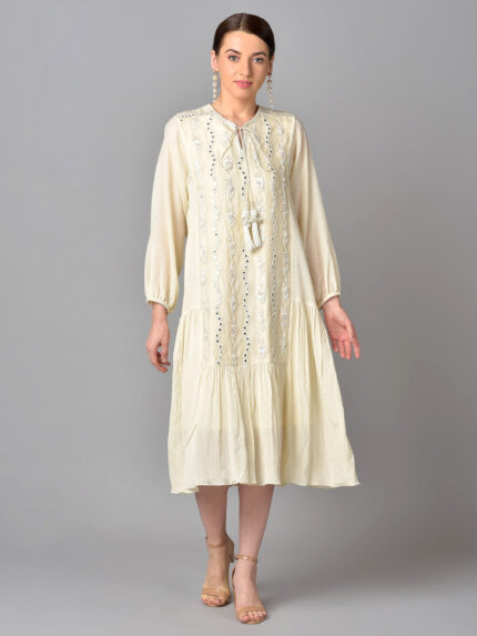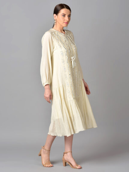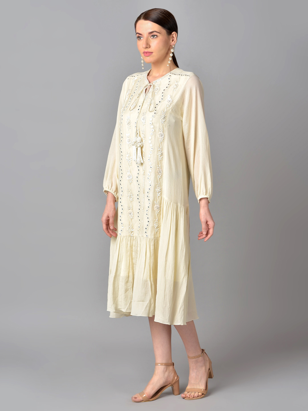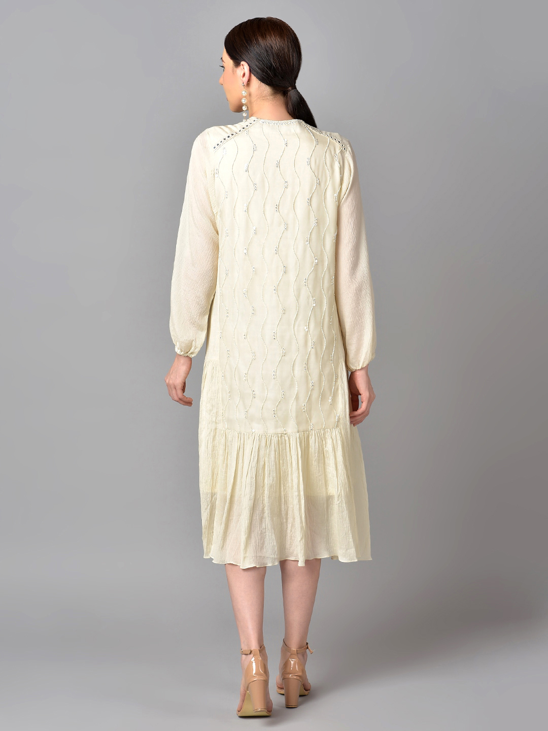 IVORY BEAD EMBROIDERED COTTON CHIFFON DRESS