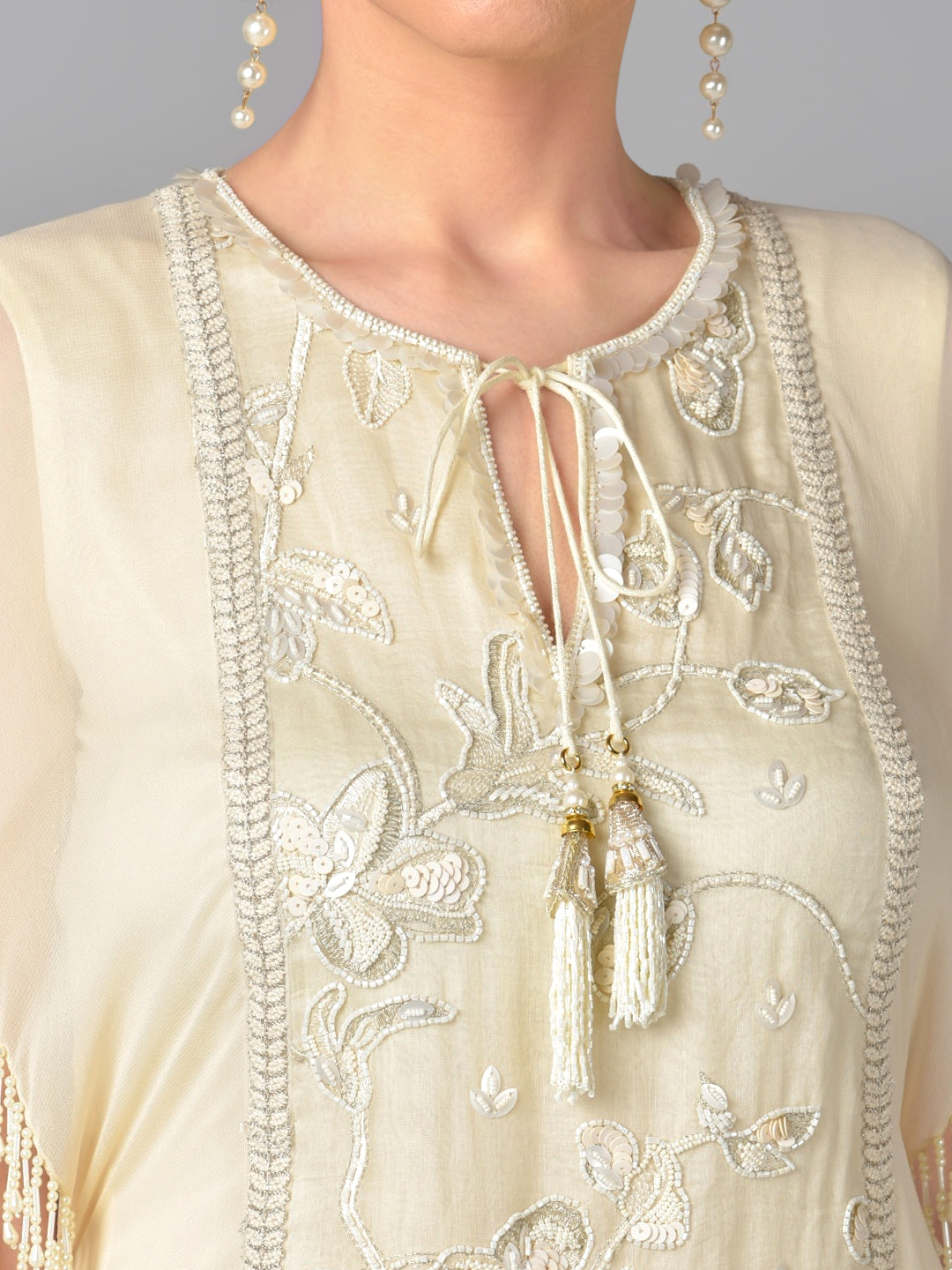 IVORY PEARL EMBROIDERED TUNIC & PALAZZO