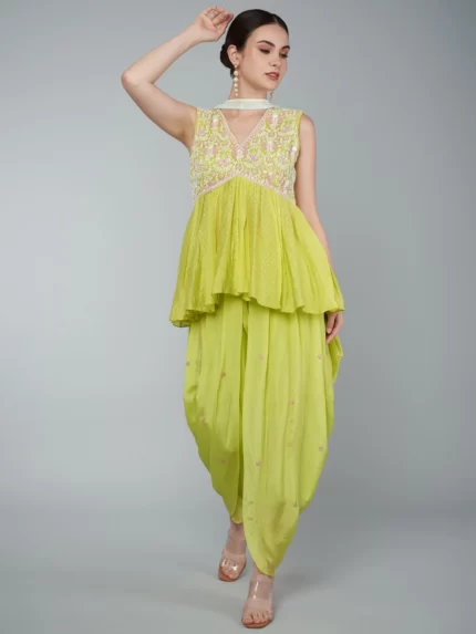 PINK BEAD/ SEQUINS EMBELLISHED TOP PAIRED WITH DHOTI & DUPATTA