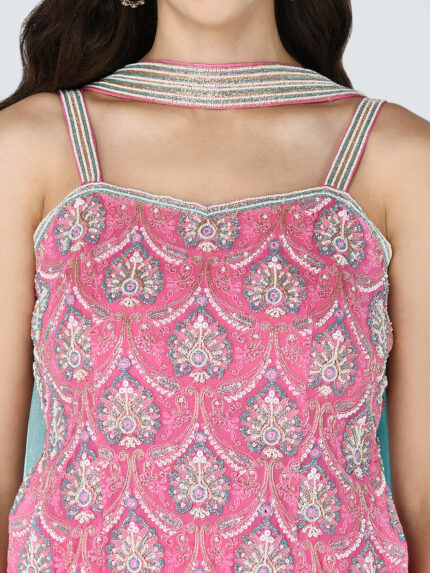 PINK BEAD/ SEQUINS EMBELLISHED TOP PAIRED WITH DHOTI & DUPATTA