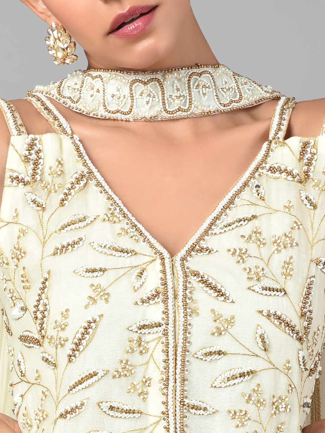 IVORY/ BEAD SEQUINS EMBELLISHED PRINTED SET