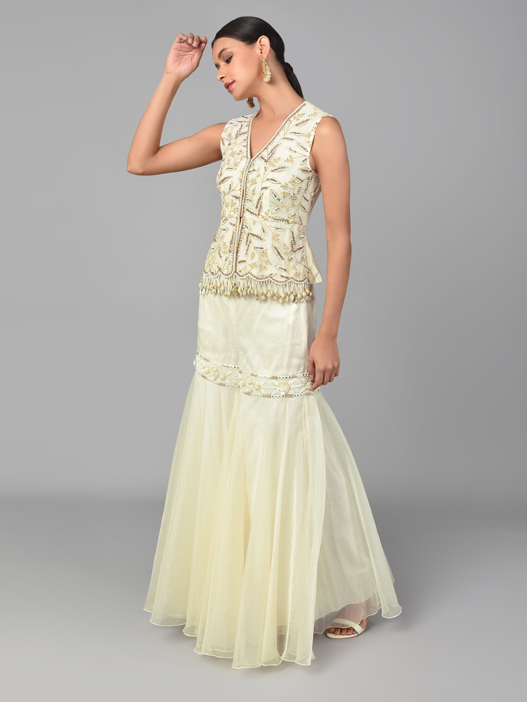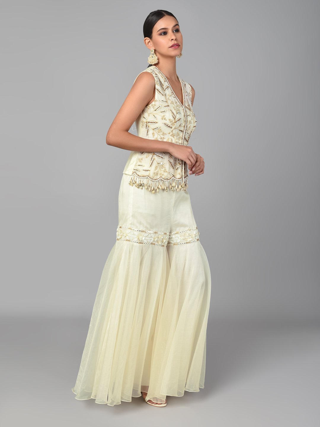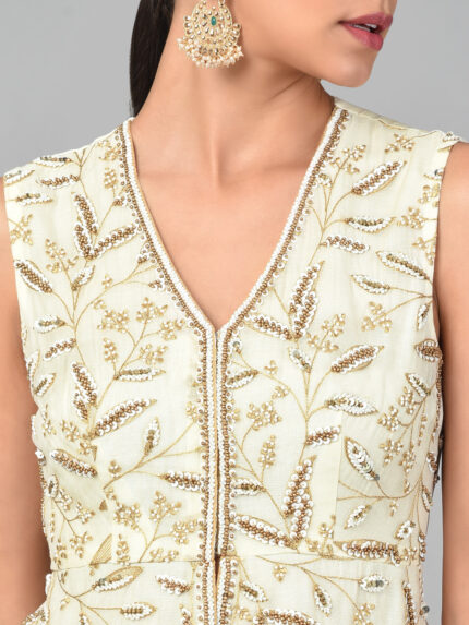 IVORY/ BRONZE BEAD EMBELLISHED PEPLUM SET