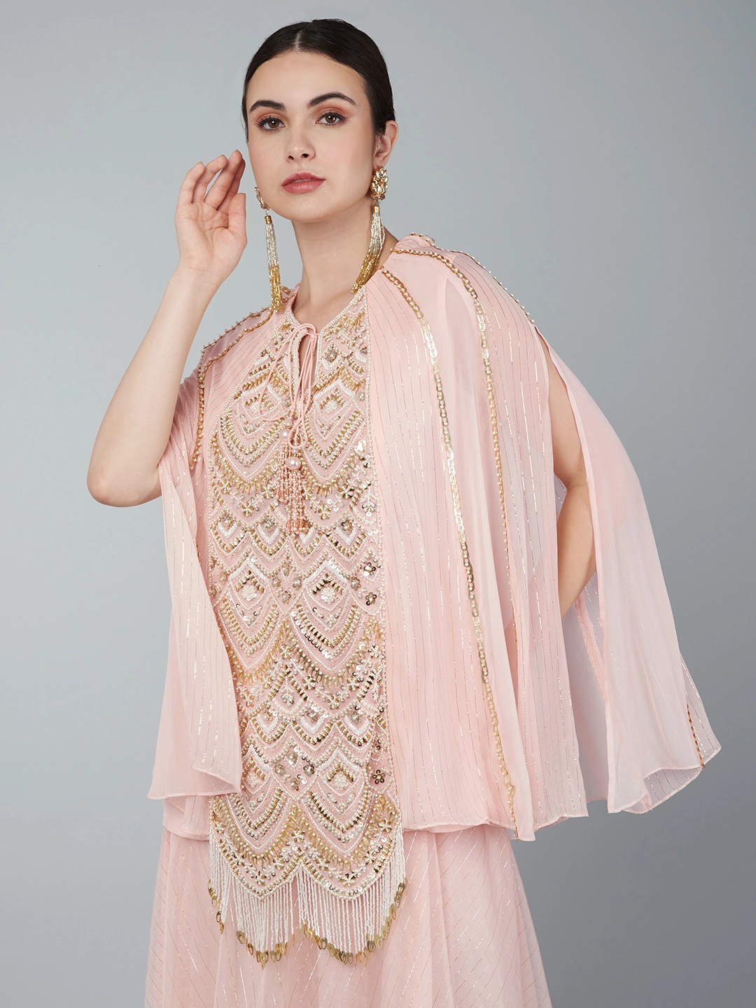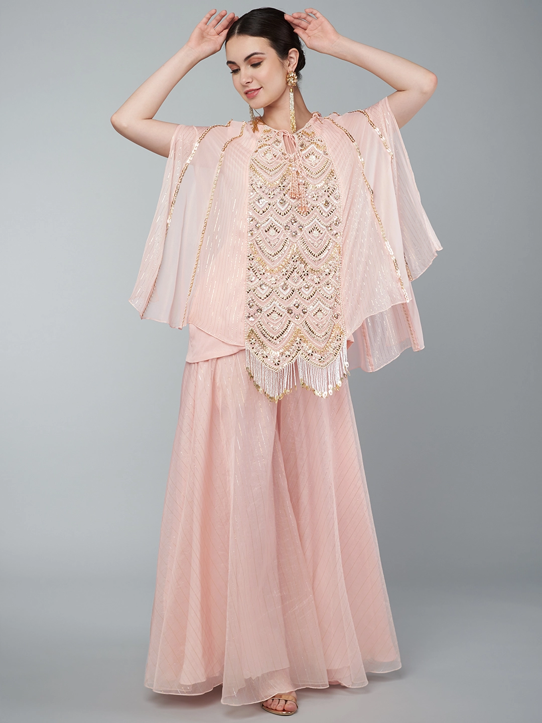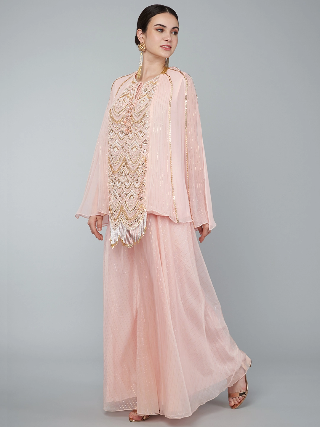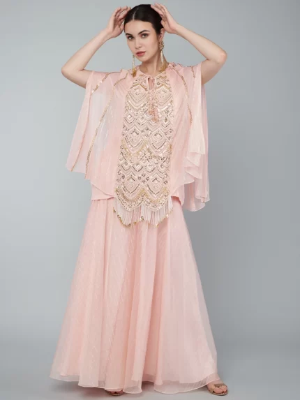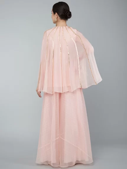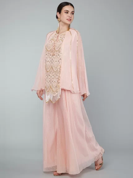 BLUSH PINK EMBELLISHED YOKE TIER TUNIC & PALAZZO SET