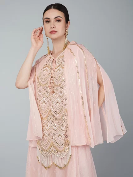 PINK BEAD/ SEQUINS EMBELLISHED TOP PAIRED WITH DHOTI & DUPATTA