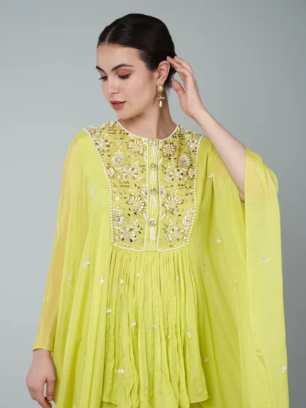 SEQUINS EMBELLISHED TIER TUNIC & PALAZZO SET