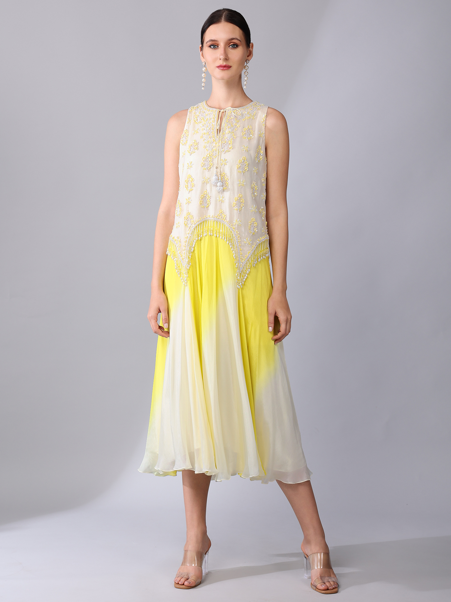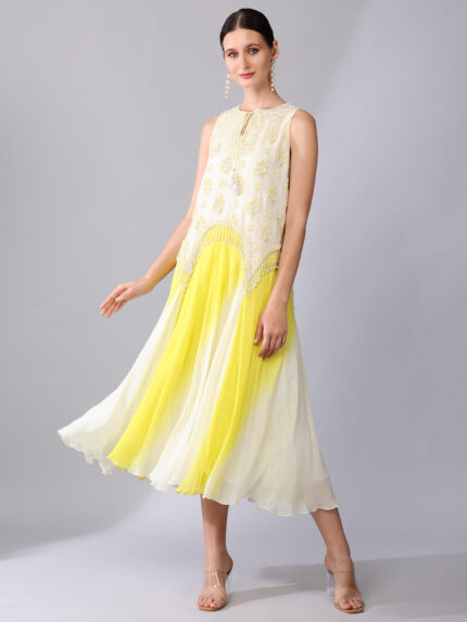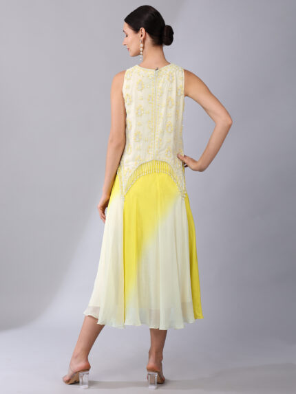IVORY BEAD EMBELLISHED YELLOW OMBRÉ DRESS