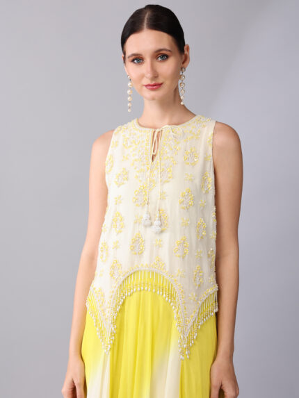 IVORY BEAD EMBROIDERED YELLOW CAPE & PALAZZO SET