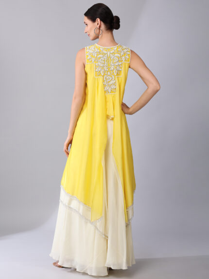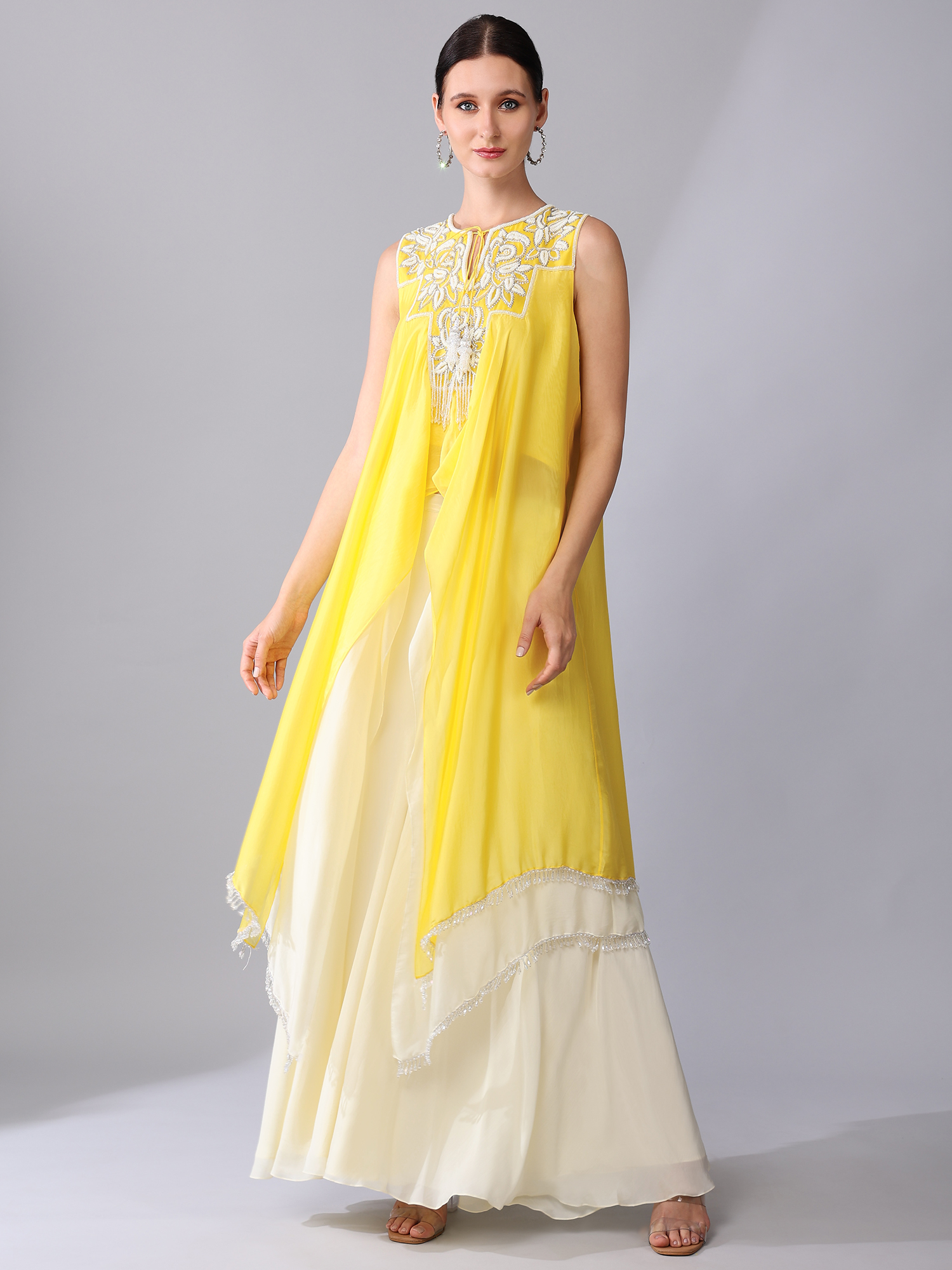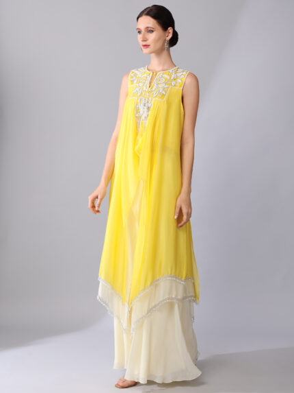 PEARL EMBROIDERED ORGANZA SILK DOUBLE LAYER TUNIC & PALAZZO SET