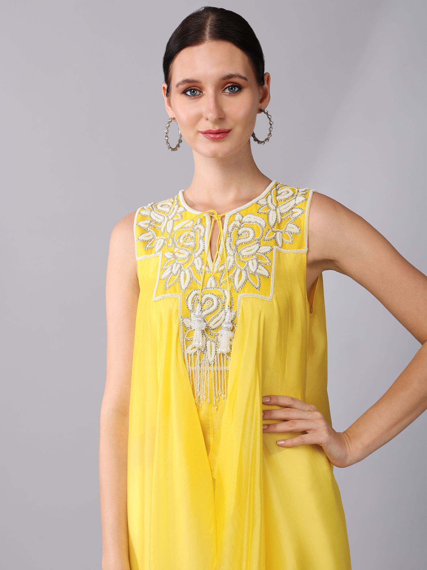 GOLD EMBELLISHED YOKE PANEL TUNIC & PALAZZO SET
