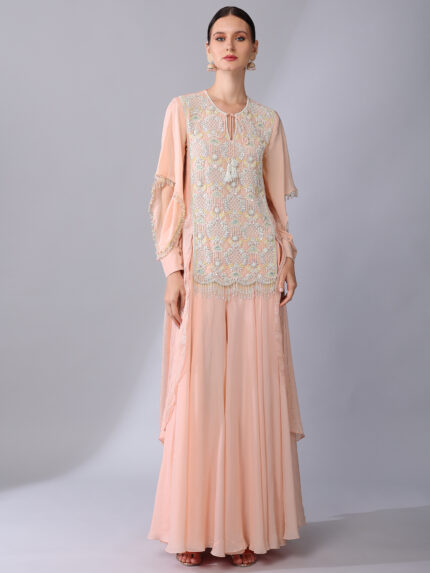 PEARL/ SEQUINS EMBROIDERED TUNIC & PALAZZO SET
