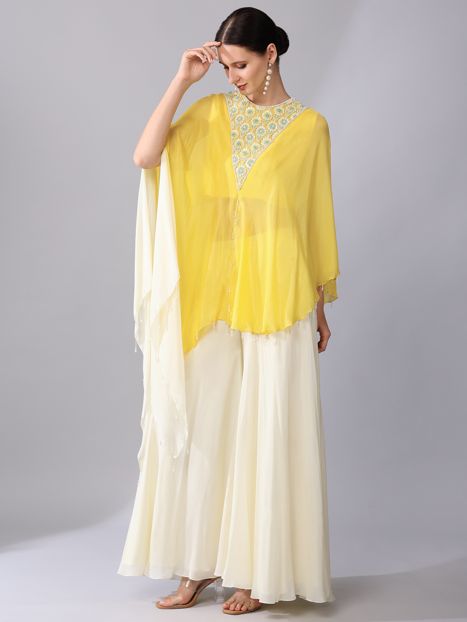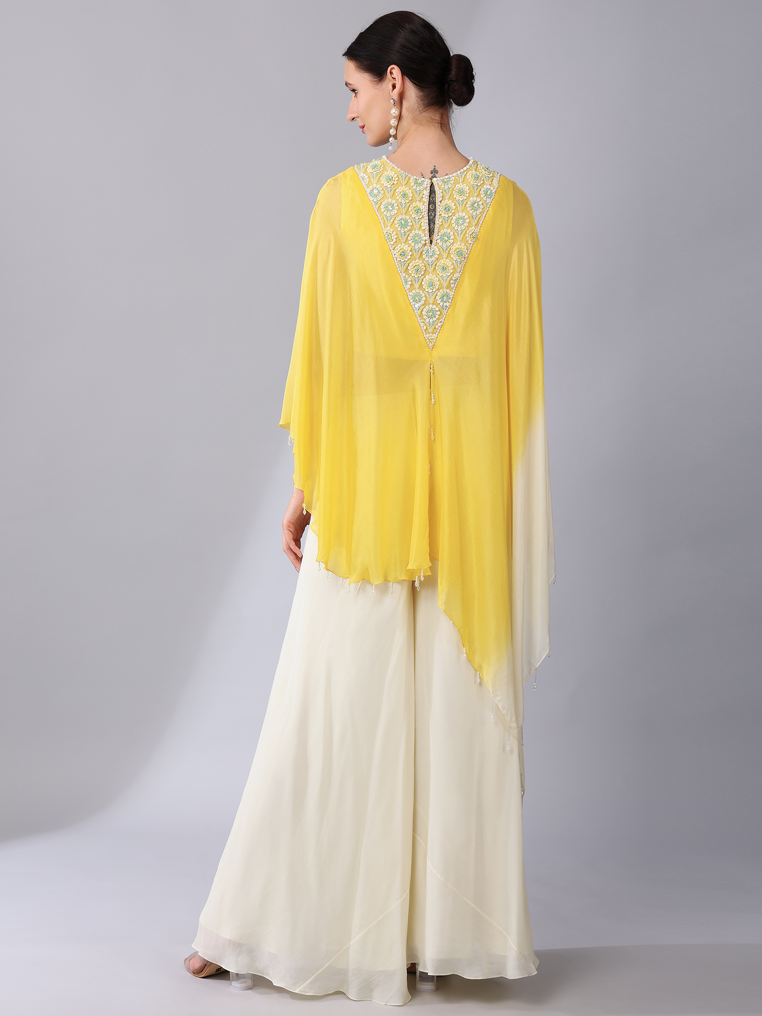 IVORY/ GOLD EMBELLISHED HIGH LOW CAPE SET