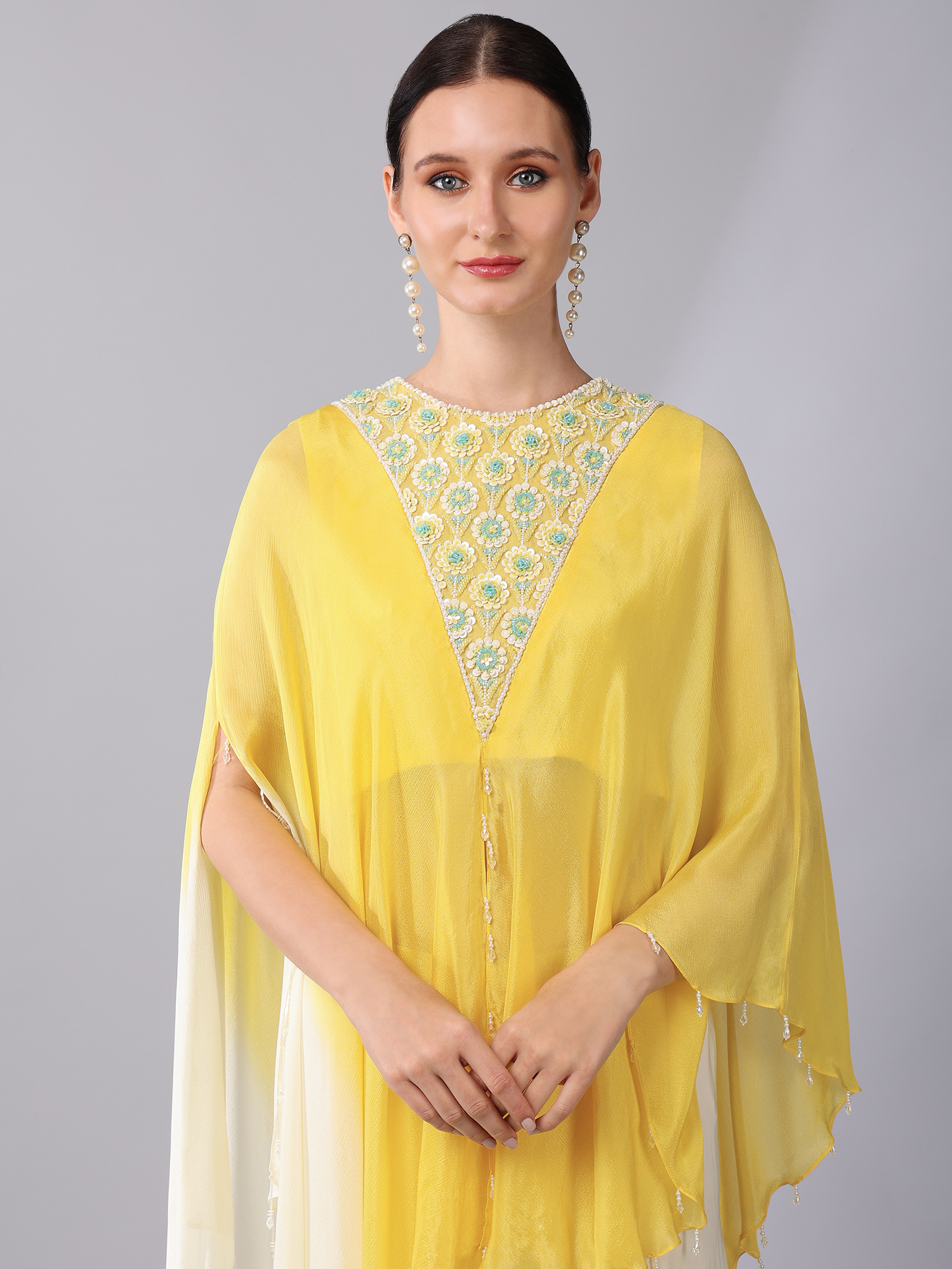 YELLOW FLOWER MOTIFS YOKE OMBRÉ TUNIC & PALAZZO SET