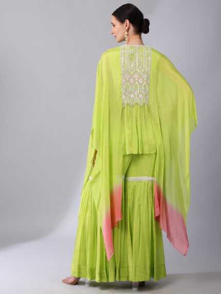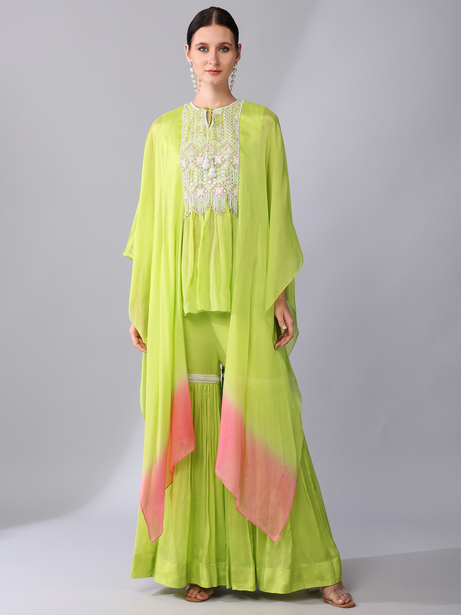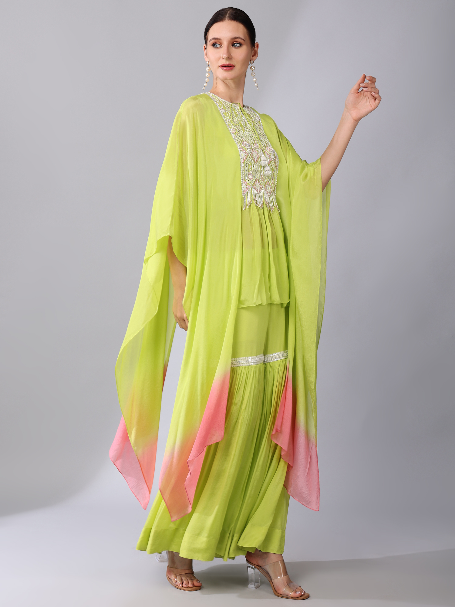 EMBELLISHED YOKE OMBRÉ TUNIC & GHARARA SET