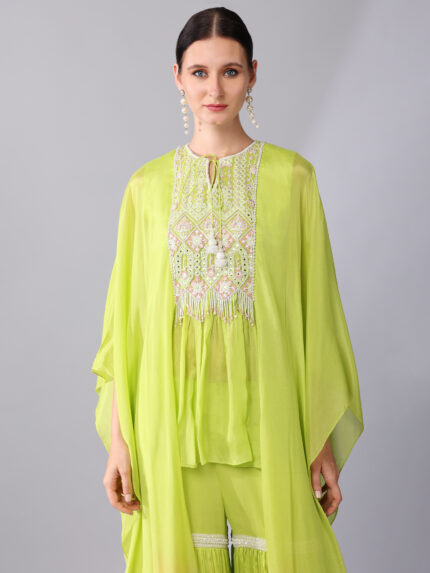 IVORY/ GOLD EMBELLISHED HIGH LOW CAPE SET