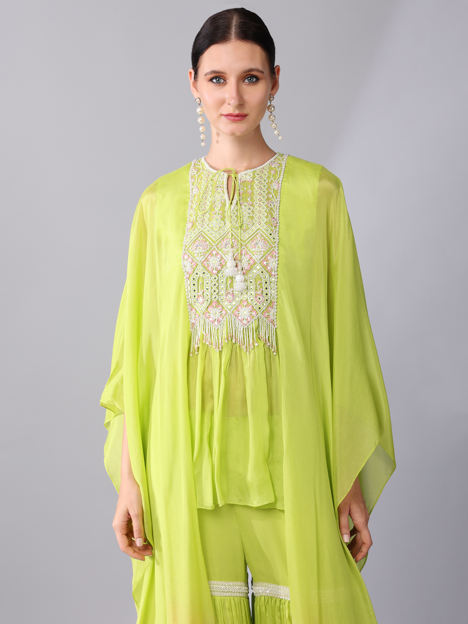 SEQUINS EMBELLISHED TIER TUNIC & PALAZZO SET