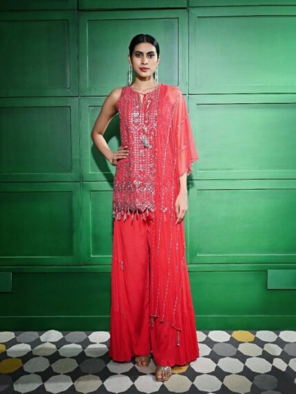 MULTI COLOR EMBELLISHED OVERLAP TUNIC & PALAZZO SET