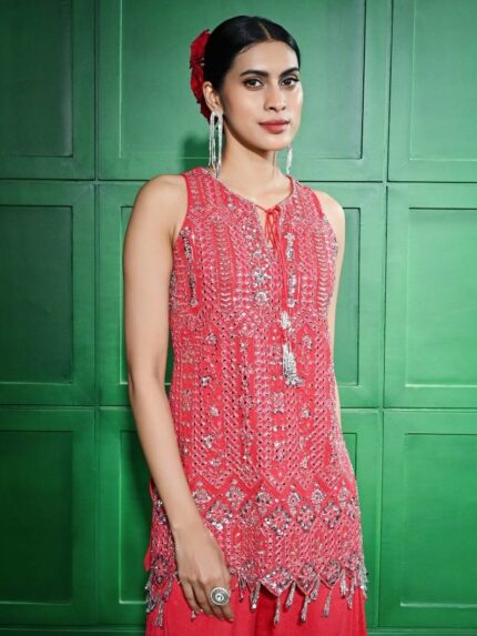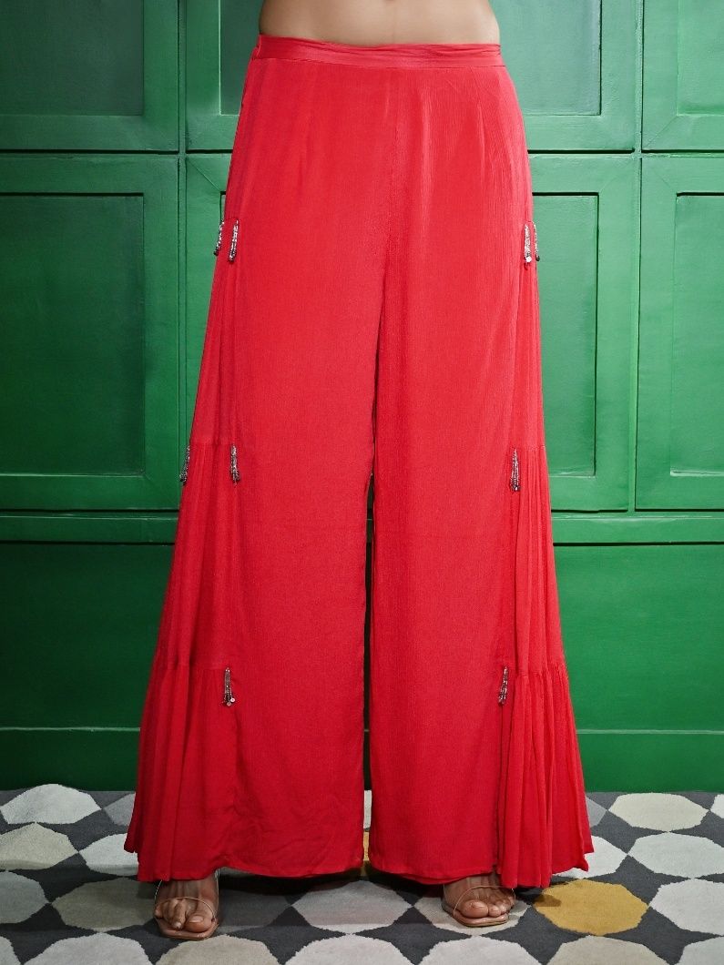 PEARL/ SEQUINS EMBROIDERED TIER TUNIC & PALAZZO SET