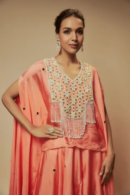 PINK PANEL CAPE TUNIC & PALAZZO SET