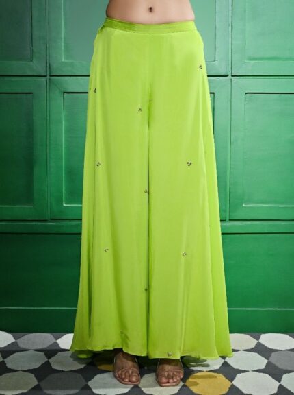 PEARL EMBROIDERED ORGANZA SILK DOUBLE LAYER TUNIC & PALAZZO SET
