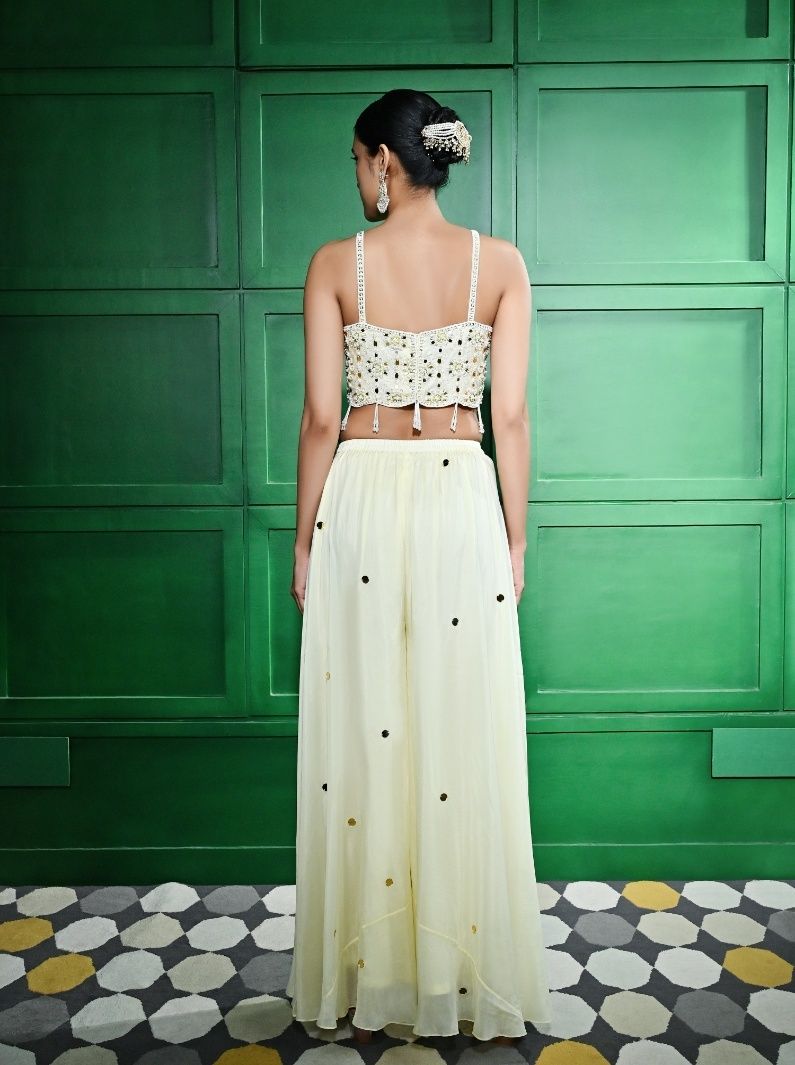 PEARL EMBROIDERED YELLOW ORGANZA SILK TUNIC & PALAZZO SET
