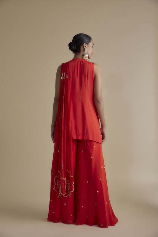 Be the first to review “MULTI COLOR EMBELLISHED TUNIC AND AN ATTACHED DRAPE DUPATTA PALAZZO SET” Cancel reply