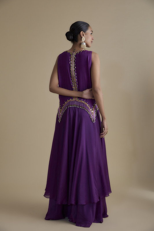 EMBROIDERED CROPTOP PAIRED WITH A CREPE SKIRT & AN EMBROIDERED ORGANZA DRAPE
