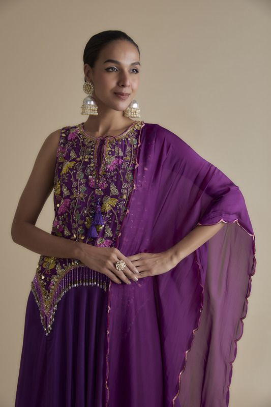 MULTI COLOR EMBELLISHED TUNIC AND AN ATTACHED DRAPE DUPATTA PALAZZO SET