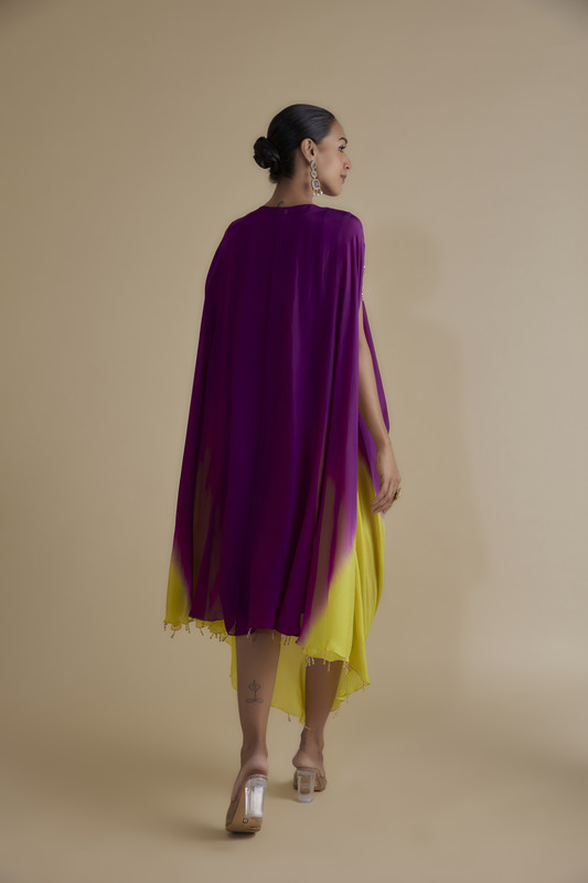 IVORY BEAD EMBROIDERED YELLOW CAPE & PALAZZO SET