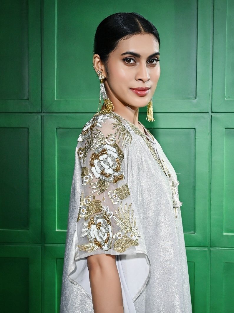 PEARL/ SEQUINS EMBROIDERED TIER TUNIC & PALAZZO SET